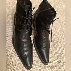 Kenneth Cole New York Italy 7.5 Black Soft Leather Lace Up Ankle Boots