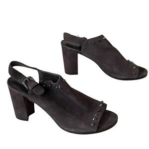 Stuart Weitzman Suede Heel Booties Womens 6 Brown Studded Slingback Modern Chic Sandal Shoes
