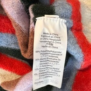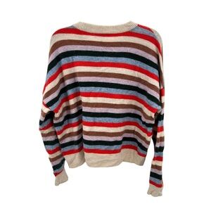 This Madewell sweater showcases a vibrant blend of red and pink hues in a classic crew neck design. Crafted from a soft knit material, it offers a relaxed fit perfect for casual wear. The sweater's cozy texture and striking color combination make it a standout piece in any wardrobe.