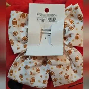 NWT 🏈 Target White and Brown Football Pattern Hair Bow