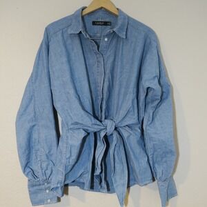 Lauren Ralph Lauren Tie Front Chambray Shirt Long Sleeve ASO Darla Queen Sugar