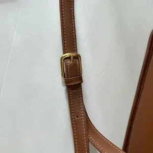 Elegant tan vintage willis leather shoulder bag with gold accents. Ideal for daily wear. No 9927
