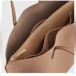 NWOT Quince Italian Leather Triple Compartment Shopper Tote In Cappuccino