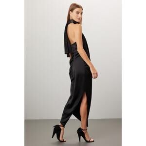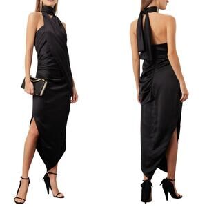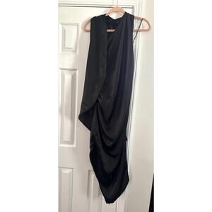 ARIAS NEW YORK Black Crepe Asymmetrical Drapey Halter Formal Cocktail Dress Sz 2