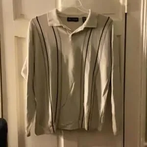 Men’s Brandini collared cream sweater with black and tan stripes. Never worn. Size large. AP to AP-22”