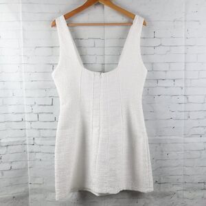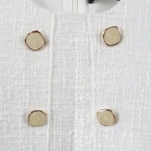 WHITE TWEED SLEEVELESS PLUNGING NECKLINE 4 BUTTON MINI DRESS WITH LINED BUST SIZE MEDIUM BY ZARA PRE OWNED NEW CONDITION