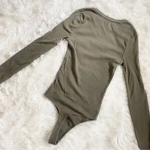 A&F olive green bodysuit with long sleeves. Perfect for versatile layering. Snap buttons. Thong back.