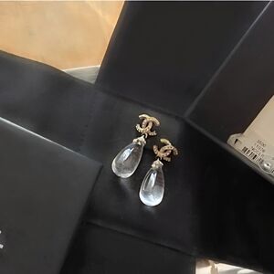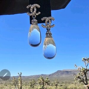 CHANEL Silver Crystal & Strass Drop Earrings RARE