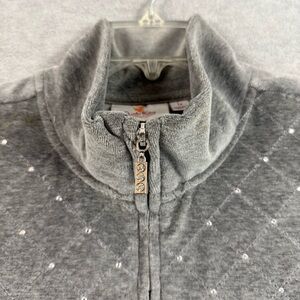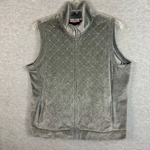 Quacker Factory 1X Grey Velour Vest Full Zip Silver Studs Rhinestones Quilted