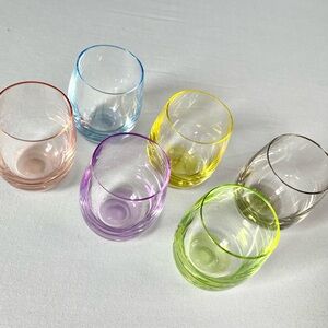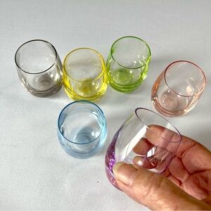 Assorted coloured shot glasses - a simple way to know which one is yours.