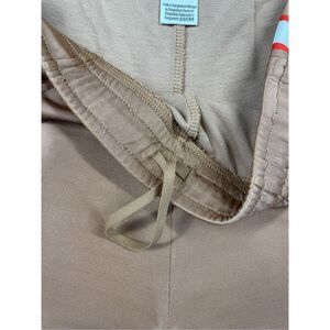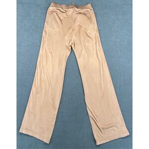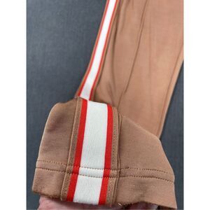 These PINK by Victoria’s Secret lounge pants feature a sporty design with bold red and white side stripes, a relaxed wide leg fit, and an elastic waistband with drawstring. Made from a smooth, lightweight fabric in a warm tan color, they offer a comfortable and trendy athleisure look. Great for casual wear or lounging. Please see photos for measurements.
