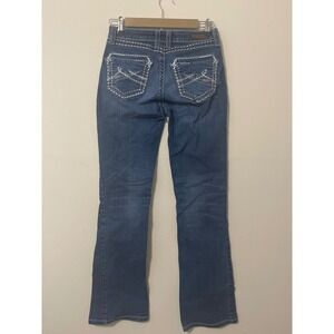Keywords: Rock 47 Wrangler Jeans, Women's Jeans, Low Rise Jeans, Bootcut Denim, Embellished Jeans, Size 27x34, Western Style, Designer Jeans, Blue Jeans, Wrangler Jeans, Fashion Denim, Casual Pants, Distressed Denim, Comfort Stretch
