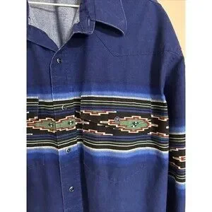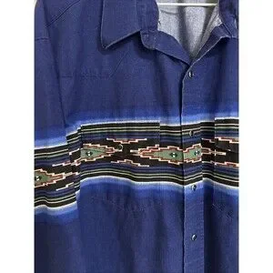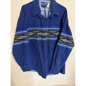 Wrangler Pearl Snap Western Shirt XL Cowboy Rodeo Aztec Southwestern Blue Vtg