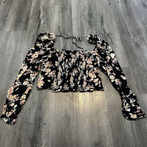 Free People Hilary Printed Long Sleeve Top Womens Size XL Black Floral Crop
