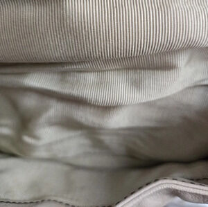 Big beautiful Vintage Badgley Mischka genuine leather Satchel with gold hardware in cream/stone genuine leather and contrast stitching. Satin liner, front big pocket, gunmetal and gold circle decor, side pockets, inside slip pockets and more. Quite lovely 😍.