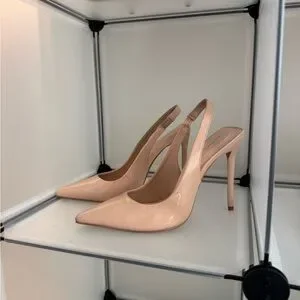 Chic slingback heels in blush pink. Sleek and stylish design. Ideal for any event.