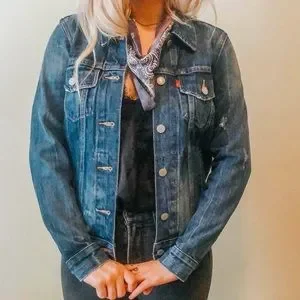 Classic Levi's jean jacket in dark blue. Perfect for casual wear. Timeless and stylish design.
