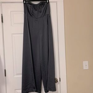 An elegant alternative to a dress, wide leg strapless jumpsuit
