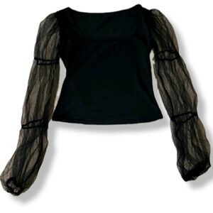 Black Sheer long sleeve puff sleeve top, tried on never worn. No tags but it's a small, fits extra small to small. I would say fits extra small maybe a lill better