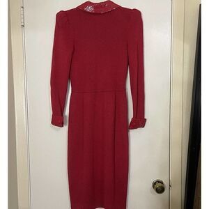 Sold🎉 vintage ST. John long sleeve wool knit sequin trim vneck blazer red dress