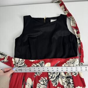 Closet London Dress Womens 12 Red Floral Pleated Retro Pinup Modest Cocktail