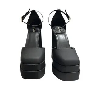 Aldo Black Ankle Strap Platform Pumps Size 8.5