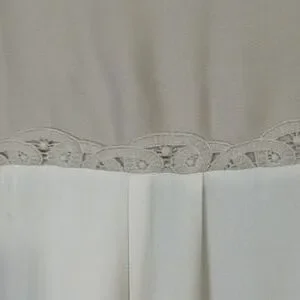 The back is done in the creamy white with the taupe accent lace and fabric. Is missing string belt. Doesn't take from it.