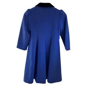 Vintage Rothschild Girl's Wool Blend Long Coat Velvet Trim Royal Blue Size 8