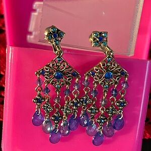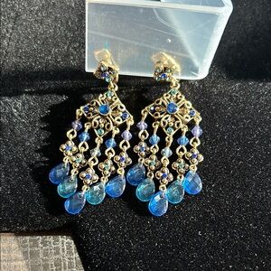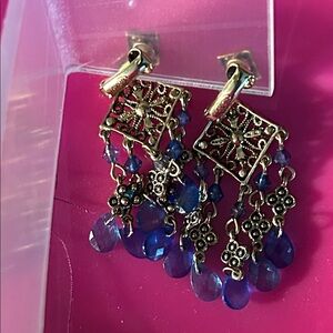 Add a touch of elegance with these stunning blue and gold vintage Avon chandelier earrings. Perfect for any occasion. Good condition