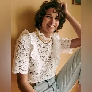 Short sleeve guipure blouse