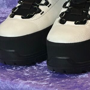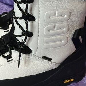 Stylish UGG boots with a black and white design. Lace-up front for a secure fit. Ideal for winter weather.