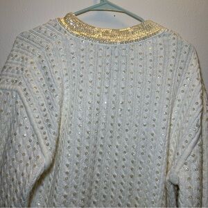 Eleanor P Brenner Vintage Gold Trim White Sweater Size Small