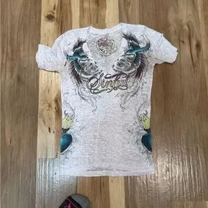 Stylish Sinful kids graphic tee in a versatile gray color. Perfect for casual outings. Some staining