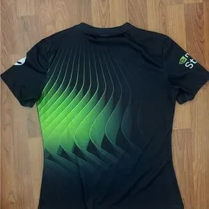 Dynamic black and green jersey with NVIDIA logo. Features a striking wave design. Ideal for tech fans.