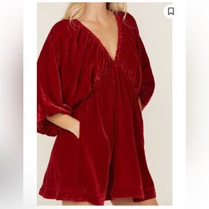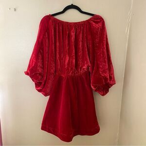 Free People Portia velvet mini dress Red puff sleeves baby doll NWT Sz