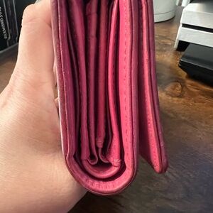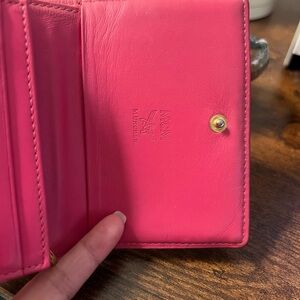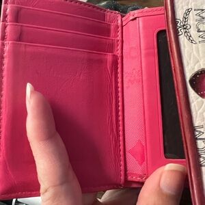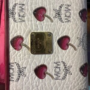 Preowned and reposhed MCM wallet with cherry design. Cute wallet in great condition. Coin slot, bill holder, id holder and credit card slots. The interior is a hot pink.