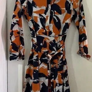 Banana Republic Long Sleeve Abstract Dress - Orange, Black, White