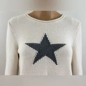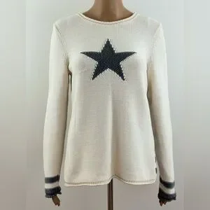 Liz Claiborne Long Sleeve Knit Pullover Sweater, Blue Star Design Women's Size M