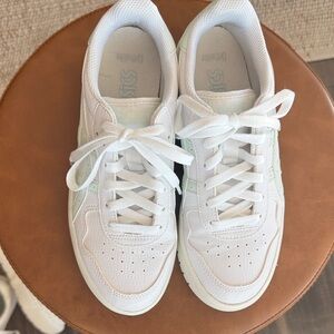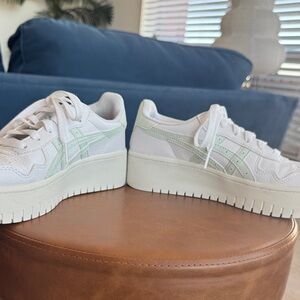 Chic ASICS platform sneakers with a white and light green design. Perfect blend of extreme comfort and style. Hardly worn & recently cleaned.