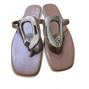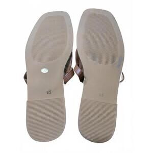 Brown women's sandals featuring a stylish gold-tone decorative accent on the strap.