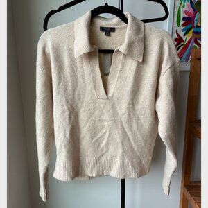J. Crew NWT Tan Collared V-neck Wool-Alpaca Sweater in Supersoft Yarn - Size S