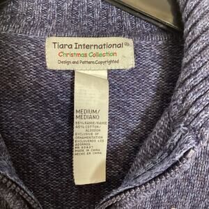 Tiara International Vintage Holiday Sweater Zip Up Snowflakes Beaded Medium Xmas