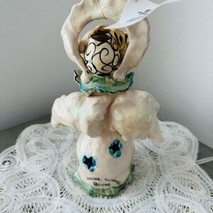 Vtg Angel Christmas Caroler Tealight Holder Goldminc Blue Sky Clayworks Heather