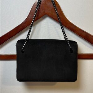 Vintage Judith Leiber suede with crystal straps small hand bag. Measurements in photos