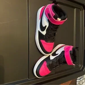 Dynamic Nike sneakers with bold pink and sleek black accents. Ideal for active kids.