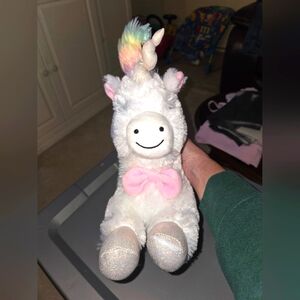 FAO Schwarz 15" Unicorn Plush. Excellent preloved condition. The unicorn design, complete with LED lights and sound, adds a touch of magic to any child's imagination.