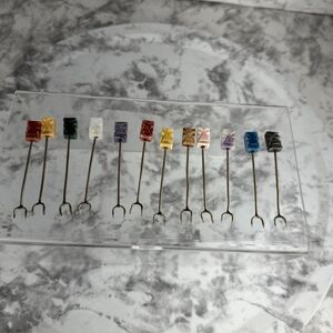 Vintage Tiki Easter Island Cocktail Appetizer Forks Skewer Carved Stone Set 12
