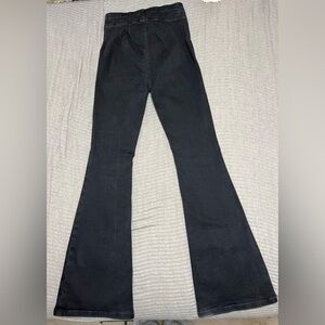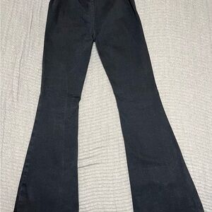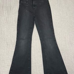 Stylish charcoal flare jeans. Perfect for versatile wear. Comfortable and chic.