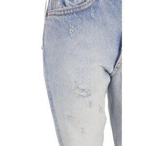 Featuring a high rise waist, distressed wear and a button fly.