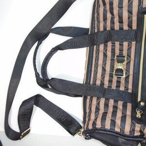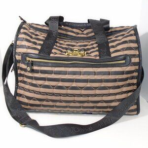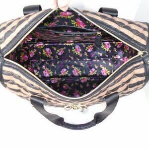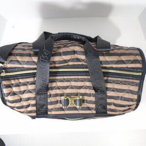 Betsey Johnson Black & Tan Quilted Hearts Large Duffle Weekend Bag Carry On Luggage Tote